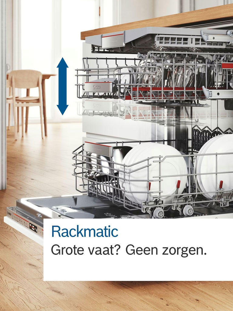 - Home Connect: Bedien uw vaatwasser waar u ook bent, krijg hulp bij de programmakeuze of download extra wasprogramma’s via de app.