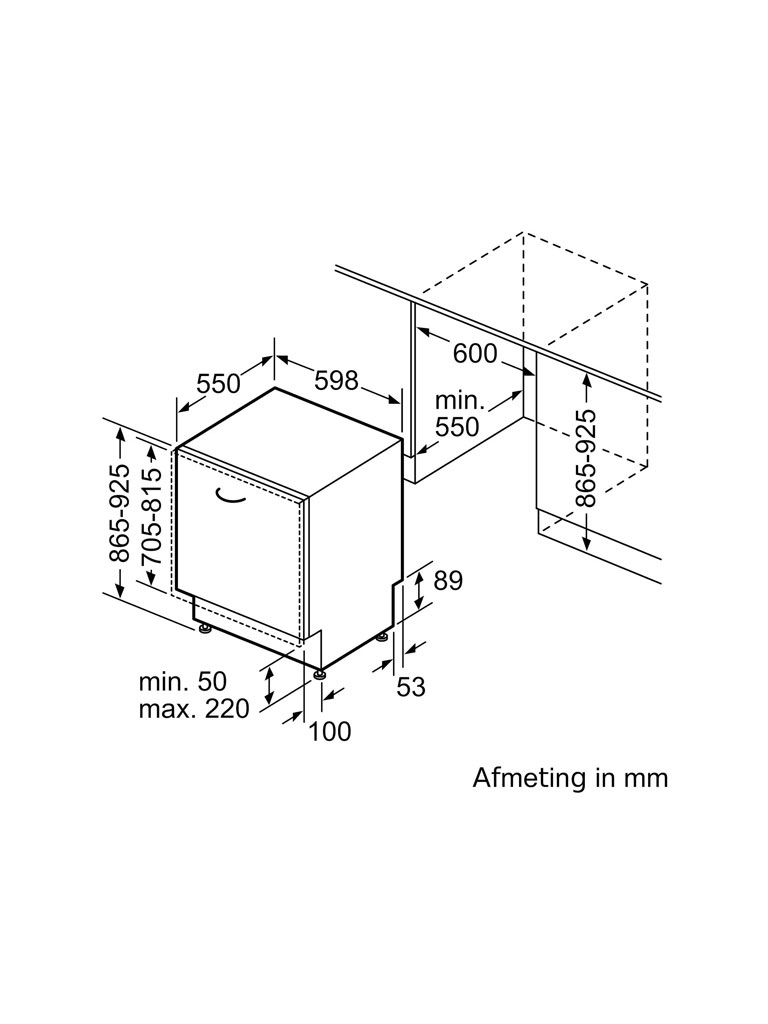 - Afmetingen (HxBxD): 86,5 x 59,8 x 55,0 cm (geschikt voor nishoogtes tot 92,5 cm).