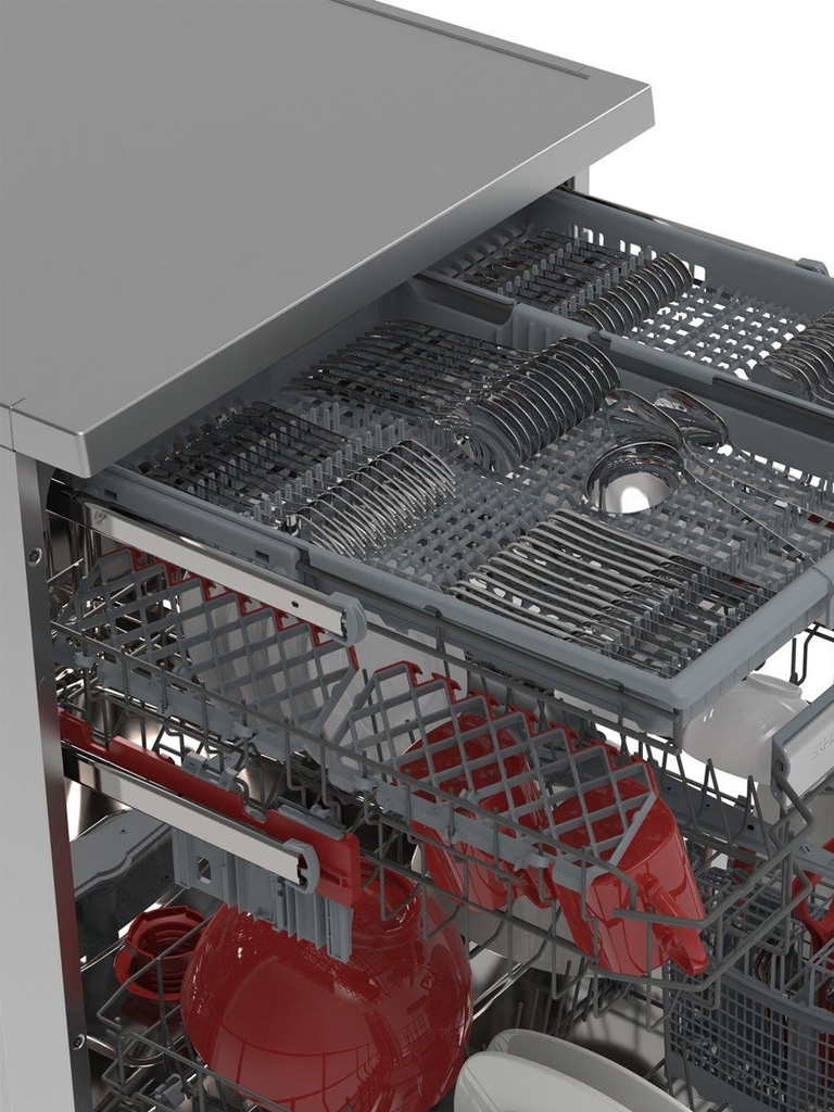 Met een capaciteit van 14 couverts biedt deze vaatwasser volop ruimte voor de vaat van een groter huishouden. Dankzij de slimme besteklade bovenin wordt bestek efficiënter gewassen en houdt u in de onderste korf meer ruimte over voor borden en pannen. De toevoeging van een topsproeier boven de besteklade garandeert dat zelfs de kleinste bestekonderdelen hygiënisch schoon uit de machine komen.