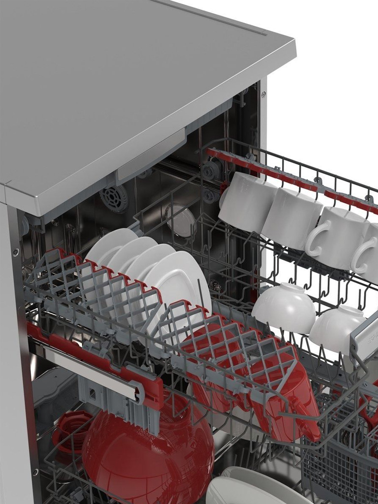 - Topsproeier: Een extra waterstraal bovenin de machine zorgt ervoor dat water elk hoekje bereikt, voor een vlekkeloos resultaat op alle niveaus.