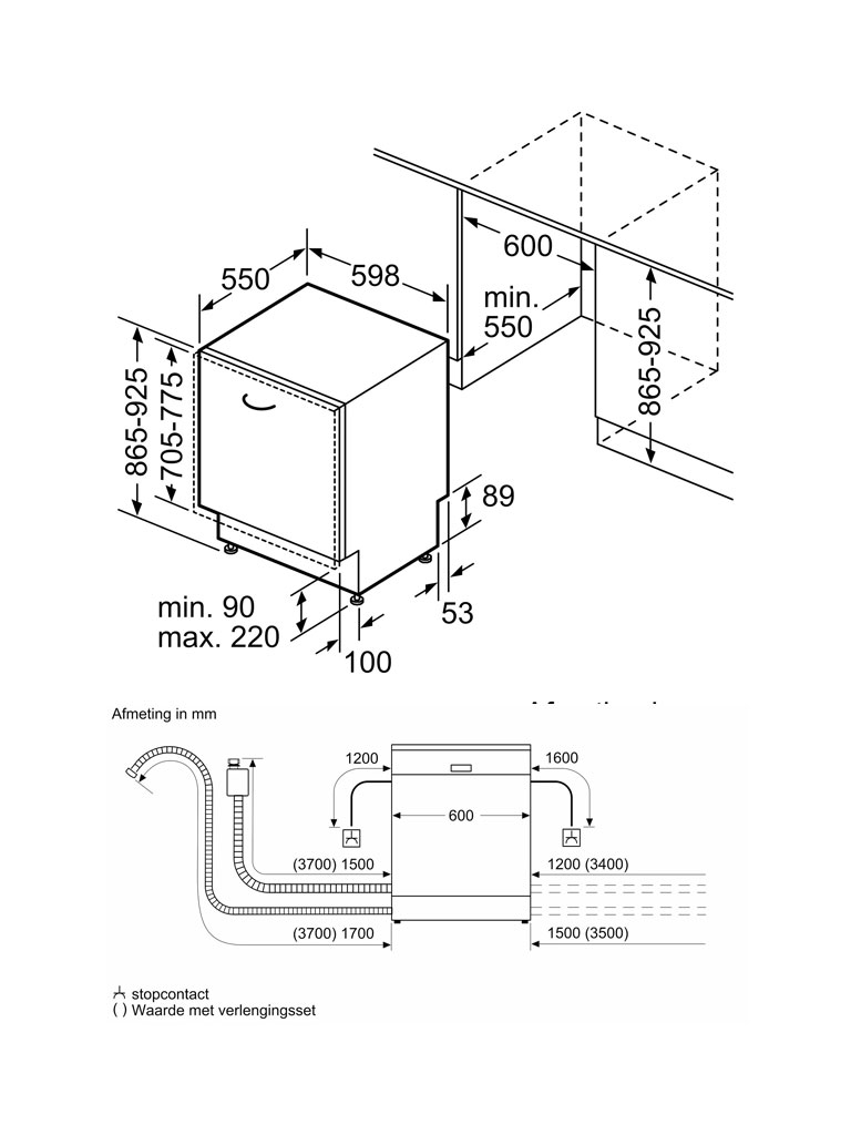- Afmetingen (HxBxD): 86,5 x 59,8 x 55,0 cm (geschikt voor nishoogtes tot 92,5 cm).